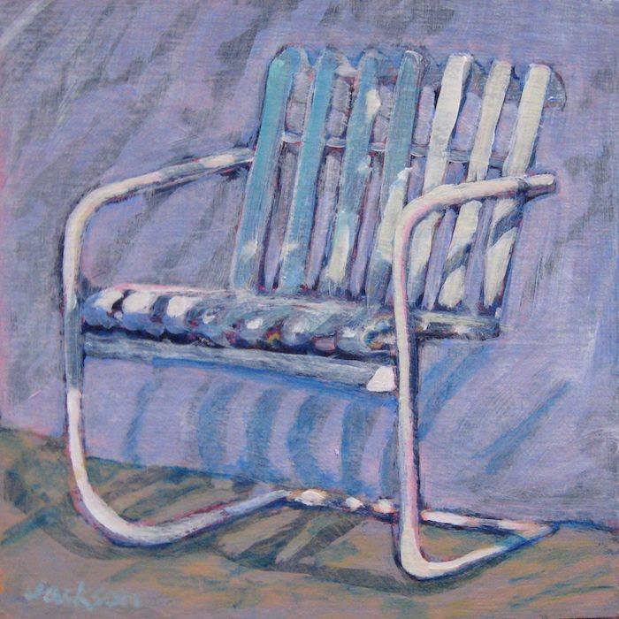 "Chair on Side of the House" Still Life in Acrylic by Jackson. Unframed